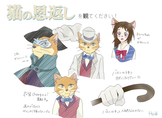 ミズジロウ ٹوئٹر پر 猫の恩返しのバロンは可愛くてかっこいい らくがき 猫の恩返し バロン